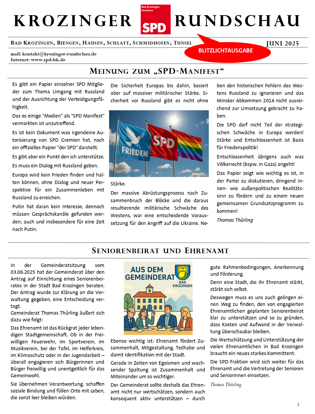 Eine Blitzlichtausgabe der Krozinger Rundschau greift zwei aktuelle Themen auf..